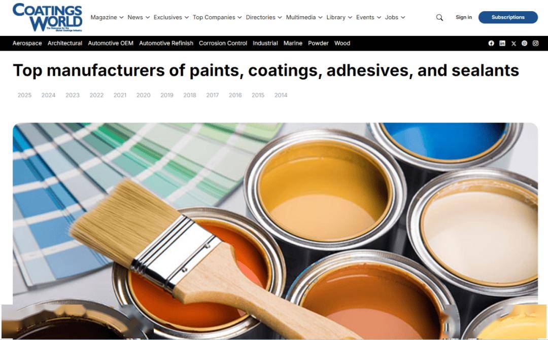 2025全球頂級塗料齊(qi)業榜:美塗士上榜